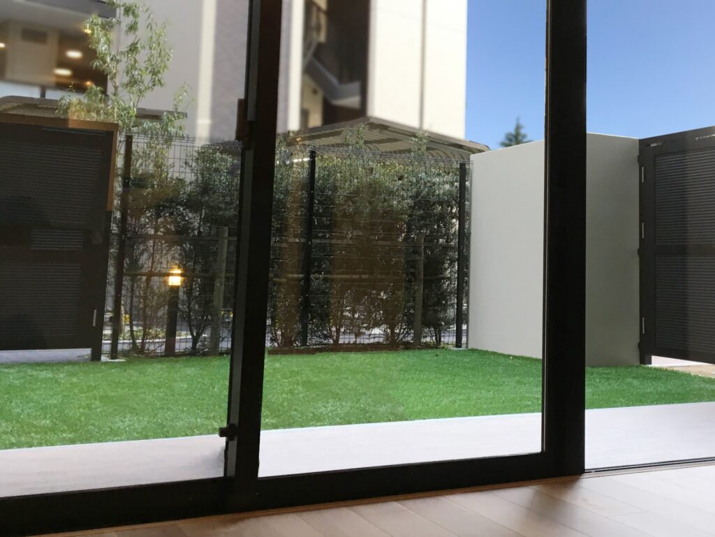 真夏の直射日光が当たると人工芝の表面温度が高くなることがあります。小さなお子さまやペットがいるご家庭では注意が必要です。